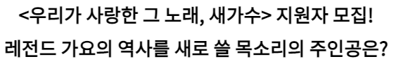 KBS 新 오디션 '우리가 사랑한 그 노래, 새가수' 론칭…오디션 접수 시작 [공식]